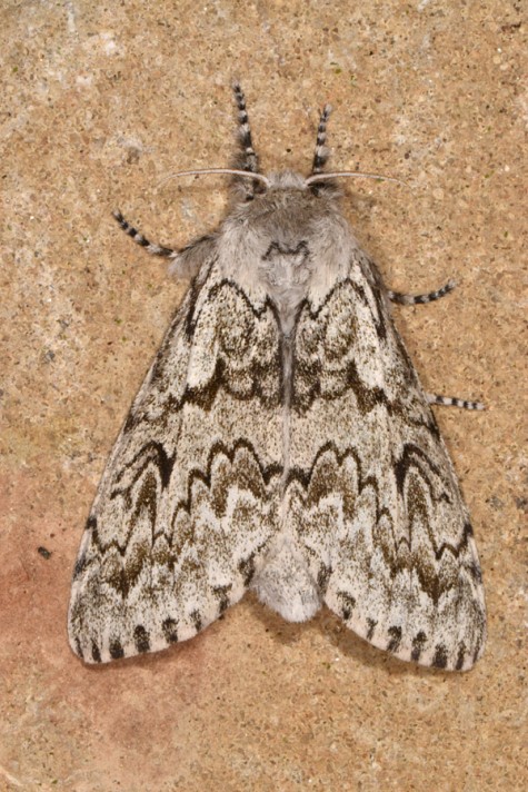 The moths occur in mostly one generation in June and July (in the north still in early August). Very rarely there is a very partial second generation in late summer. Oviposition occurs in batches on twigs and especially bark. The larva was beaten from spruce in eastern Baden-Württemberg (Germany) in September. The larvae ususally hibernate in the antepenultimate instar on the ground (possibly also on the trees?) The larvae are mature between mid-May and June. They pupate in a cocoon on twigs and bark.
