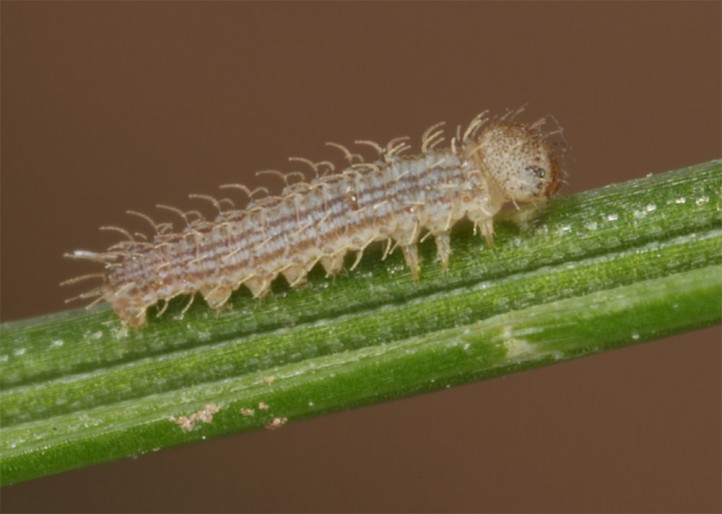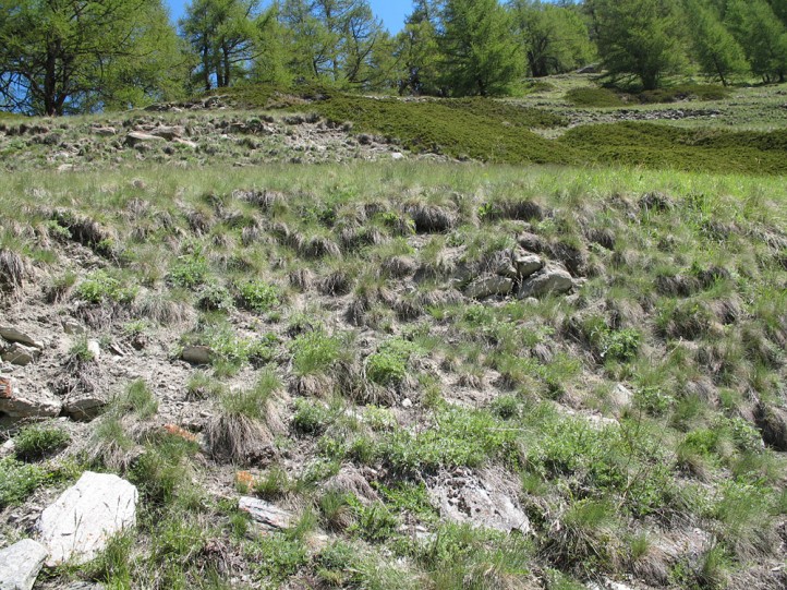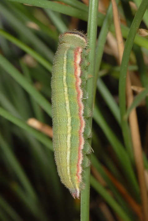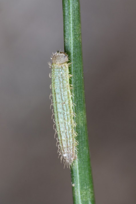The larvae feed on grasses with low production such as Festuca-species.