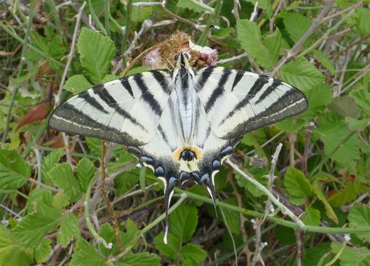 In central Europe north of the Alps, this beautiful species has been pushed back to a few heat islands where larger habitat is still available and has not yet been entirely destroyed by the wine industry etc. In the Southern Alps and the Mediterranean, however, Iphiclides podalirius is still common. At Rhodes it lives, for example, also in the inner city where the larvae feed on peach, etc.