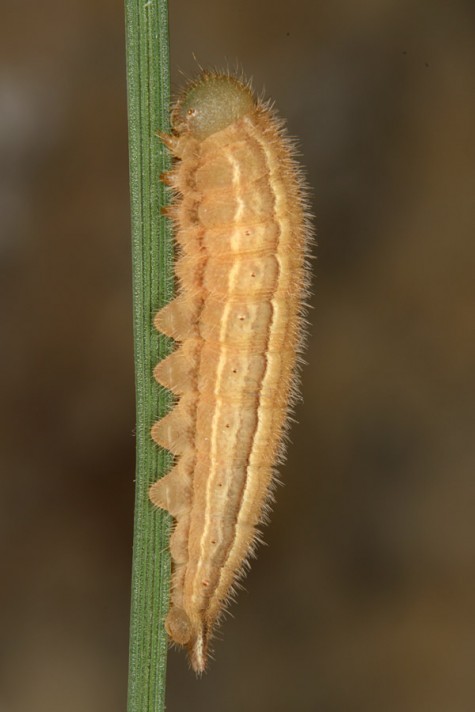 Die Raupen leben an Stipa pennata (und anderen Stipa), Festuca, Brachypodium ramosum und Ampelodesmos mauretanicus (so bei Rom).