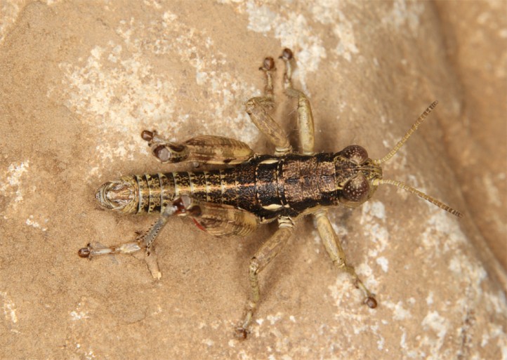 Oropodisma macedonica is found on scree, rock and in gappy pastures rich in open soil above 1600m, up to about 2300m.