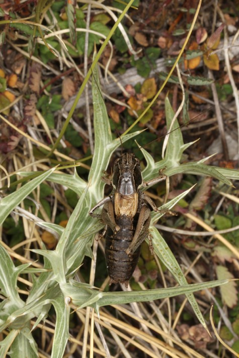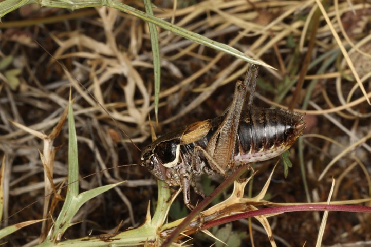 Die Imagines treten vor allem zwischen Ende Juni und September auf. Sie sind meist kleinräumig lokal, dann aber in Anzahl zu finden. Sie halten sich gerne in etwas höherwüchsigen Polsterpflanzen und Zwergsträuchern auf. Sie können auch grün sein, vor allem die Weibchen. Meine ca. 15 beobachteten Tiere waren aber alle braun.