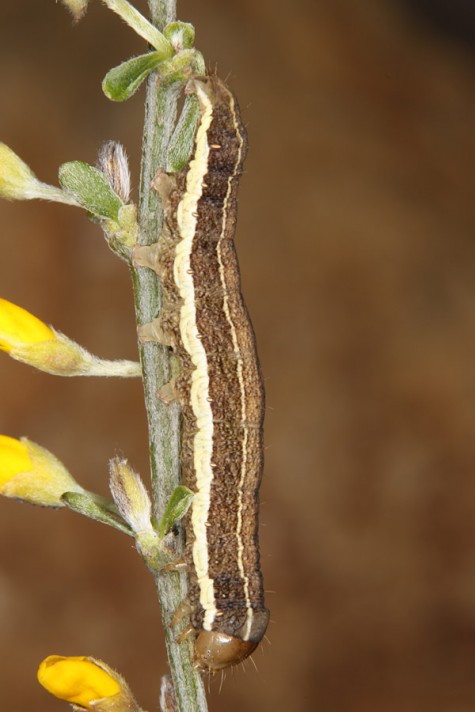 The larvae feed in the first place on brooms and gorses, more rarely also other Fabaceae.