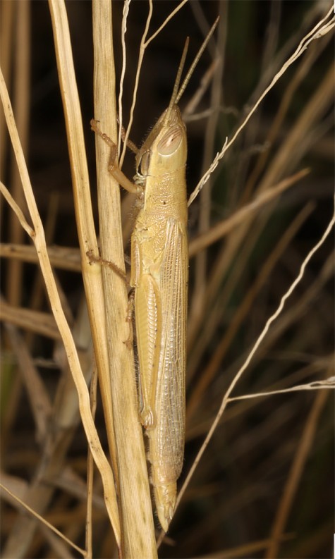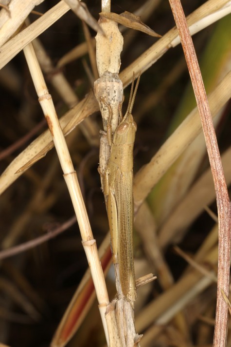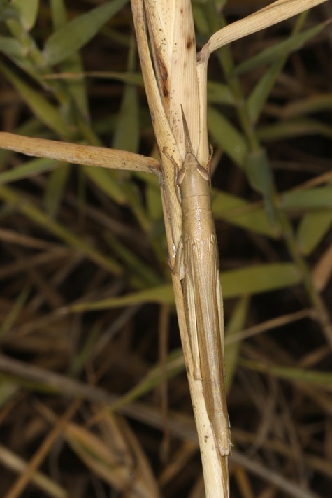 Tropidopola longicornis may be found year-round because adults overwinter. I recorded many adults, but also larvae of all stages in Crete in mid-October 2025. The animals rest on reed stalks where they are well camouflaged. They quickly turn to the opposite site on the stalk when approached.