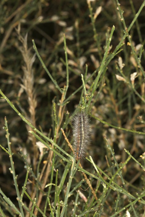 Die Falter fliegen im Frühjahr von März bis Mai. Die Raupen leben dann von Ende April bis Anfang Juli. Ich fand sie zumeist bereits ausgewachsen Ende Juni 2025 in Lagen um 1200-1700 m (Gredos). Viele Raupen erkletterten die Genista-Büsche erst in der Abenddämmerung. Die Puppe überwintert in einem Kokon in der Streuschicht oder in Grasbüscheln.