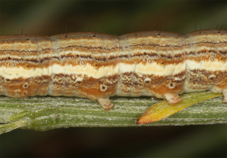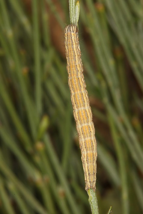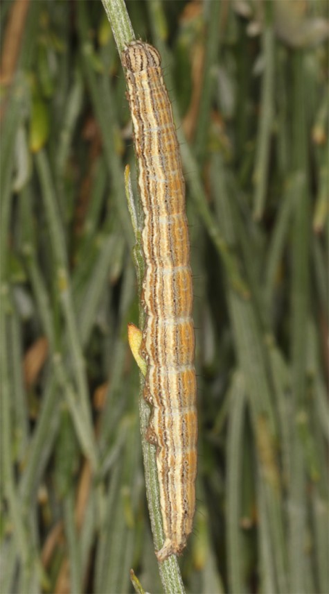 The moths hibernate. The larvae feed in spring between April and June, in the uppermost altitudes until July. I recorded the larva on young, low brooms near the ground in 1700m in the Sierra de Gredos during daytime.