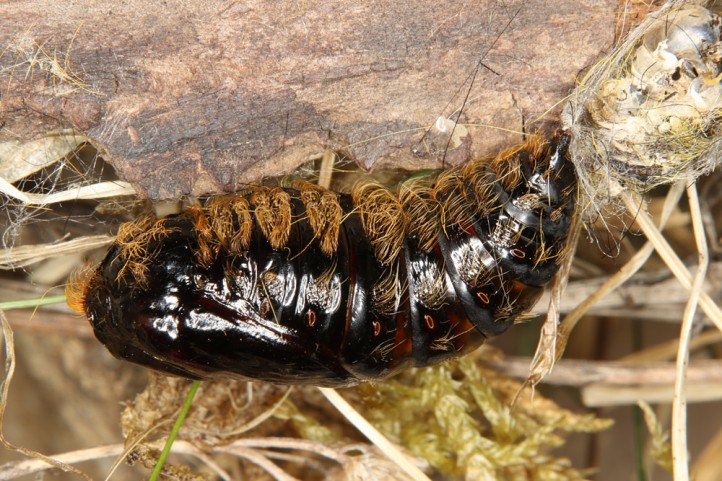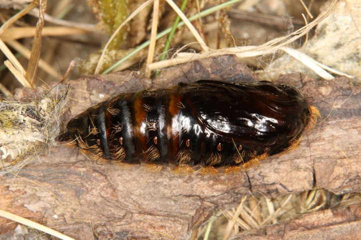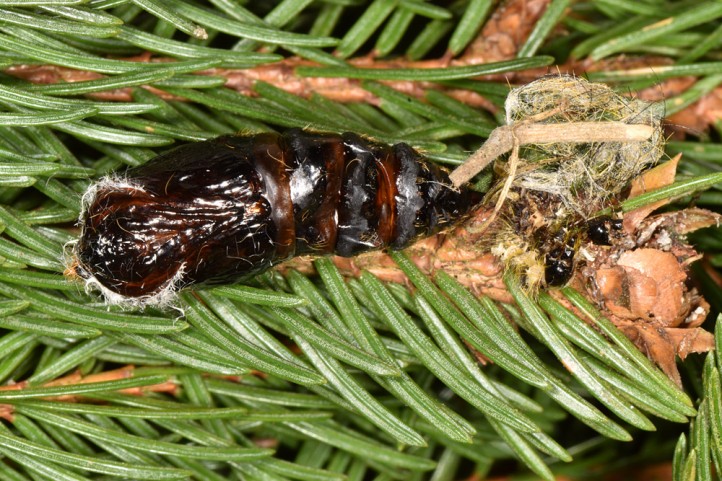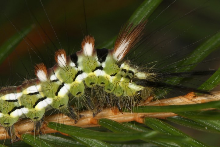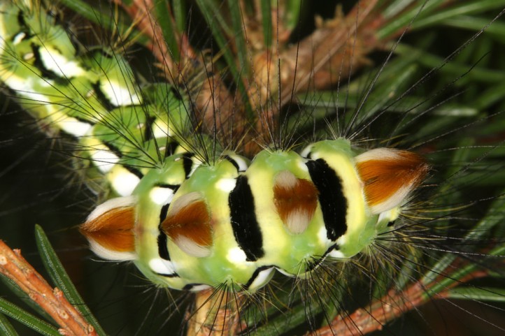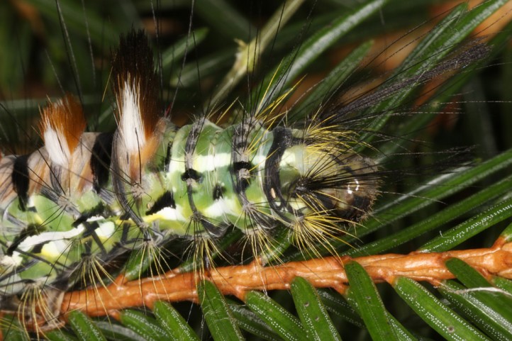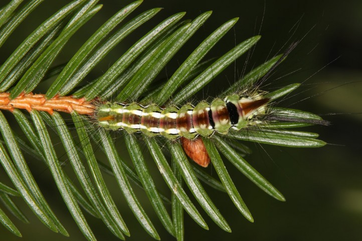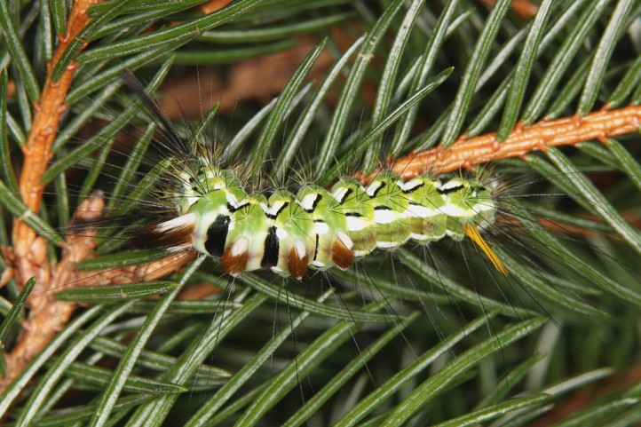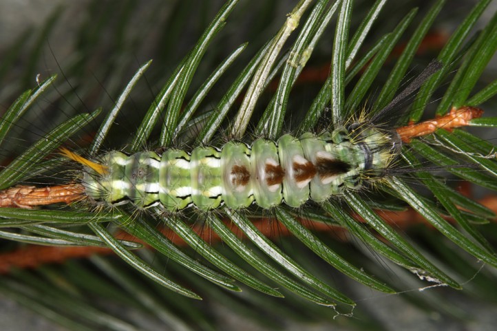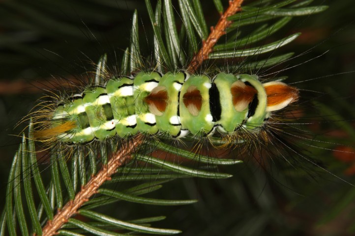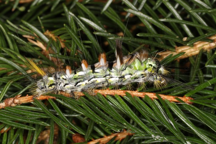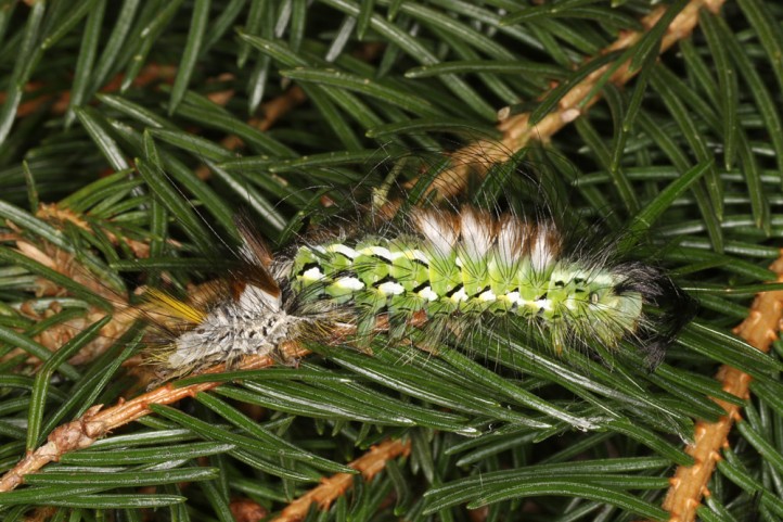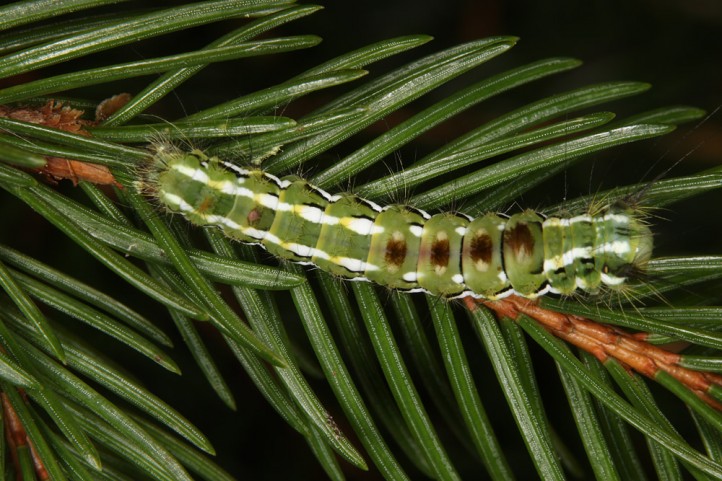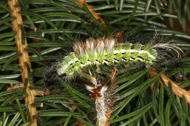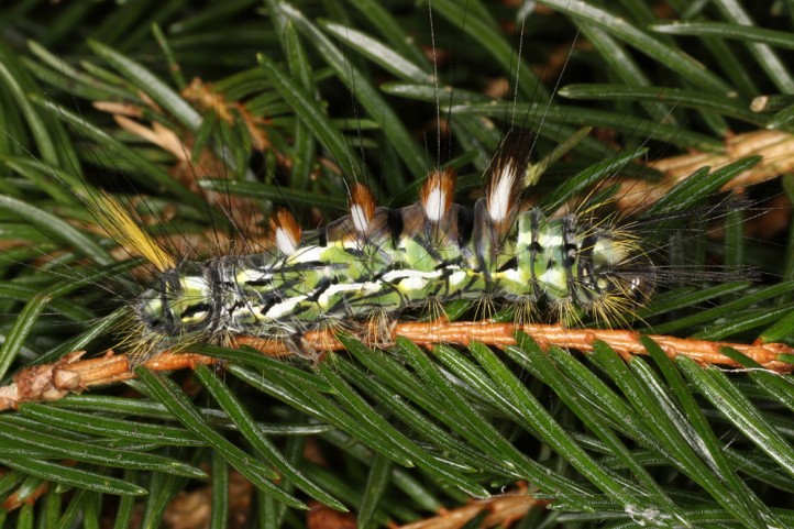 Calliteara abietis inhabits boreal coniferous forests, in central Europe usually in mountainous regions.