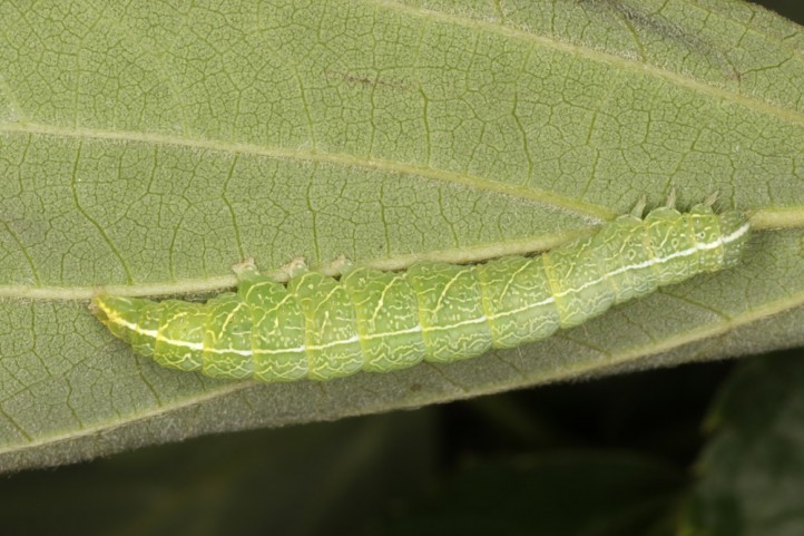 Die Raupen leben an Zürgelbaum (Celtis), in Europa meist Celtis australis.