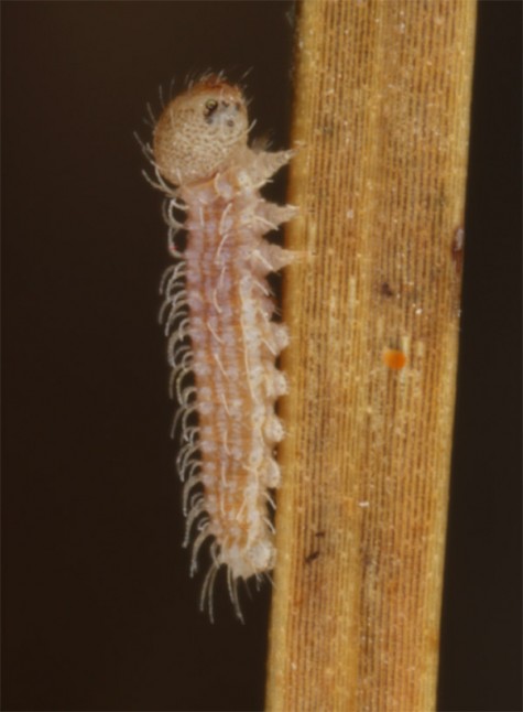 The larvae feed on grasses with low production such as Festuca-species.