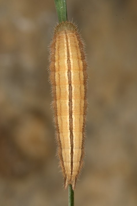Die Raupen leben an Stipa pennata (und anderen Stipa), Festuca, Brachypodium ramosum und Ampelodesmos mauretanicus (so bei Rom).