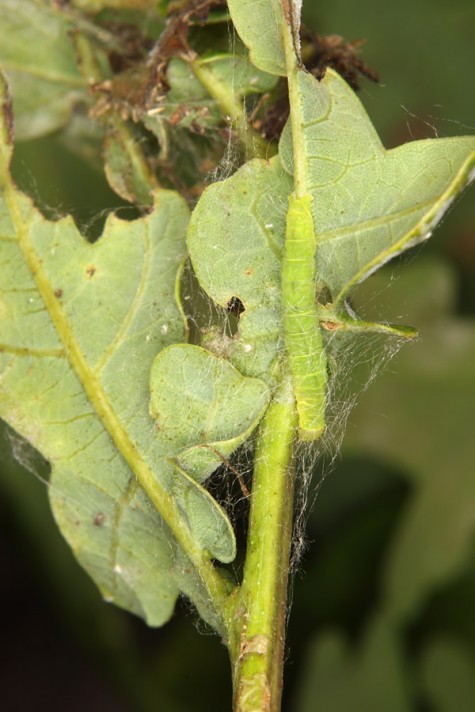 Nycteola revayana flies mostly in two generations per year. The moths overwinter. Caterpillars occur in May and June and again between July and August or early September. The caterpillars cover twig tips of young shoots with a loose webbing. The late summer caterpillars are more or less dependent on fresh shoots from the end of June to September.