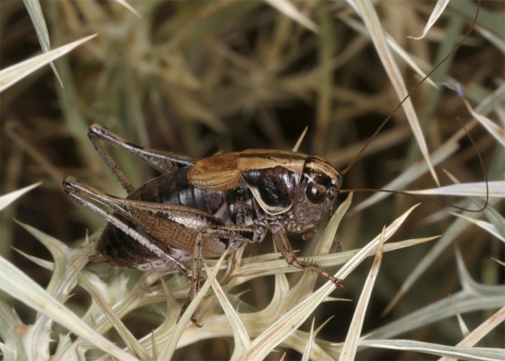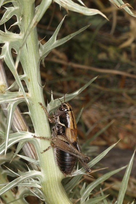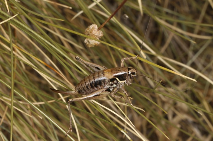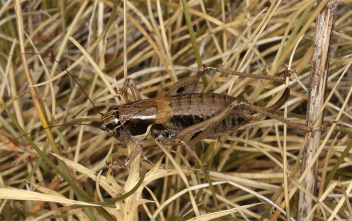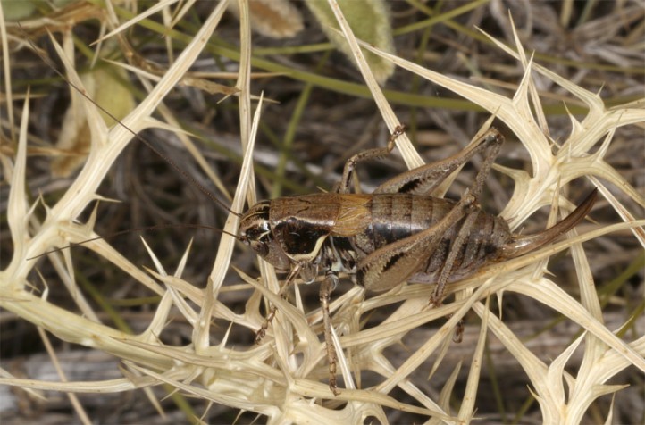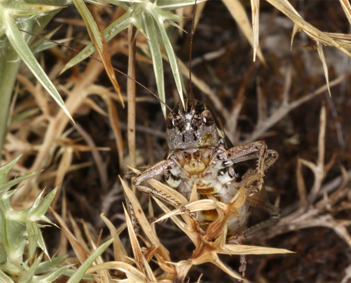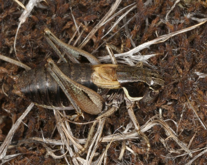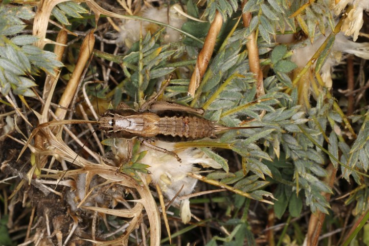 Die Imagines treten vor allem zwischen Ende Juni und September auf. Sie sind meist kleinräumig lokal, dann aber in Anzahl zu finden. Sie halten sich gerne in etwas höherwüchsigen Polsterpflanzen und Zwergsträuchern auf. Sie können auch grün sein, vor allem die Weibchen. Meine ca. 15 beobachteten Tiere waren aber alle braun.