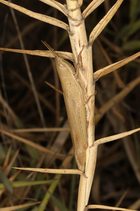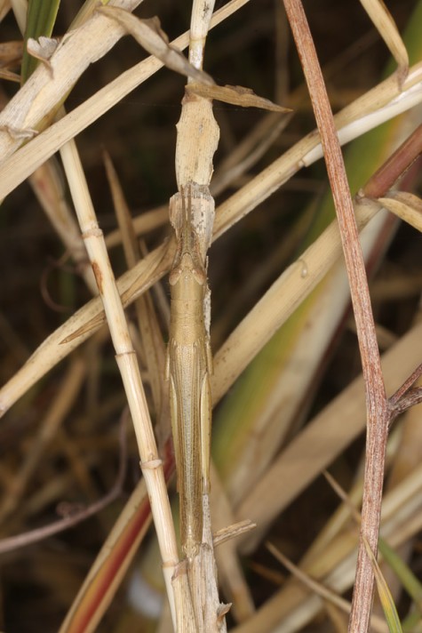 Tropidopola longicornis may be found year-round because adults overwinter. I recorded many adults, but also larvae of all stages in Crete in mid-October 2025. The animals rest on reed stalks where they are well camouflaged. They quickly turn to the opposite site on the stalk when approached.